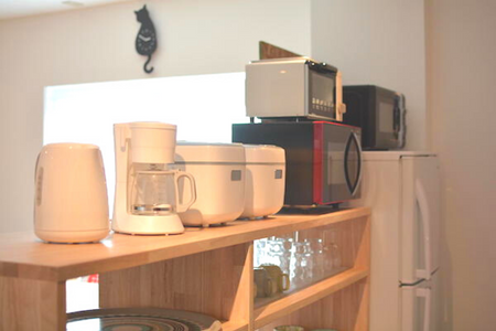 完全禁煙、wifi、靴箱、バス/トイレ別、キッチン(冷蔵庫、電子レンジ、ポット完備)×2(IH*2、シンク2台)、冷蔵庫、食器/調理器具、電子レンジ、トースター、オーブン、電気ポット、炊飯器、ミキサー、テレビ