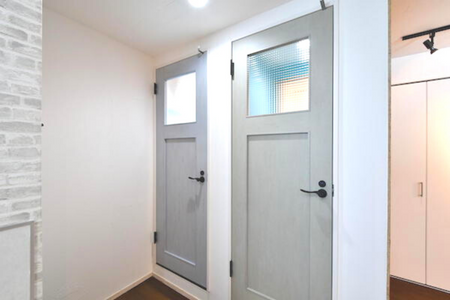 2階と3階の部屋は、アクセントクロスとドアの色の組み合わせが楽しめる、海外のアパートメントのようなデザイン。